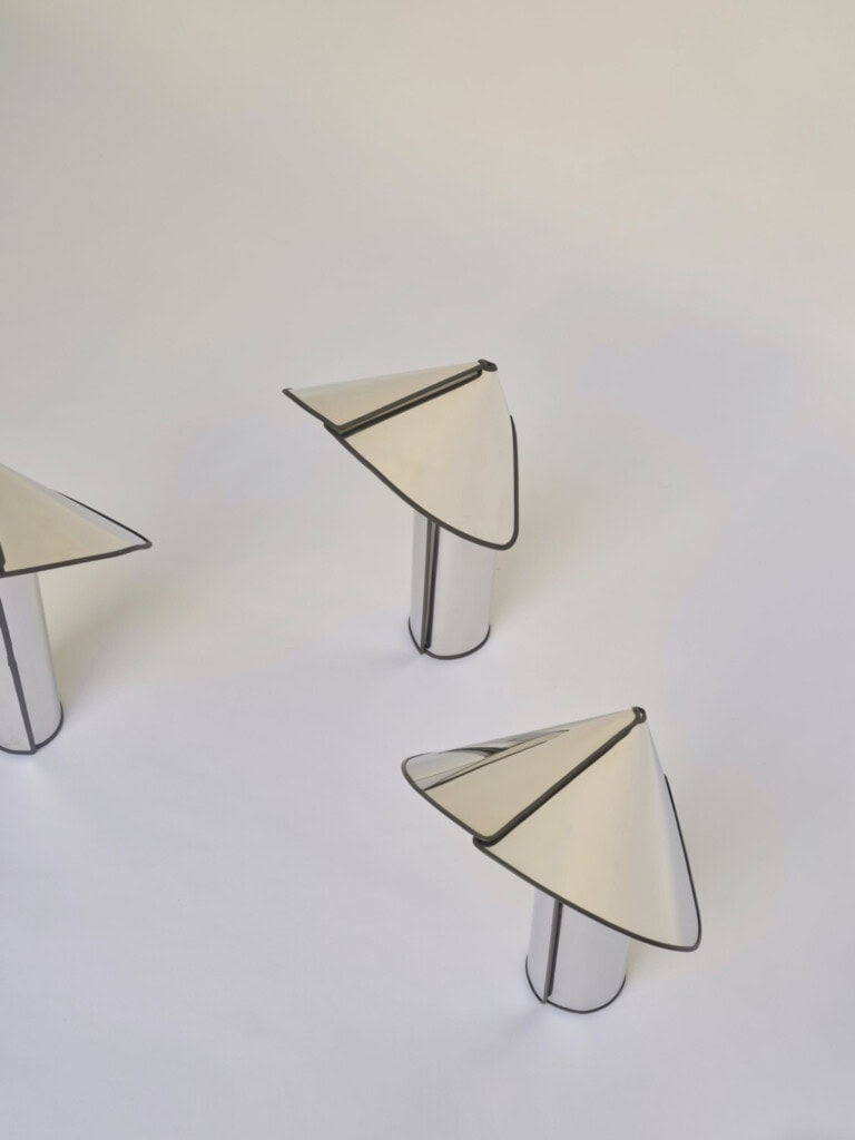 “I remember grabbing a pair of scissors and a large piece of cardboard and starting to cut. I wanted the card to be cylinder-shaped but with a wider hat at the top that would reflect the light source, positioned at the base. And Chiara was born.”